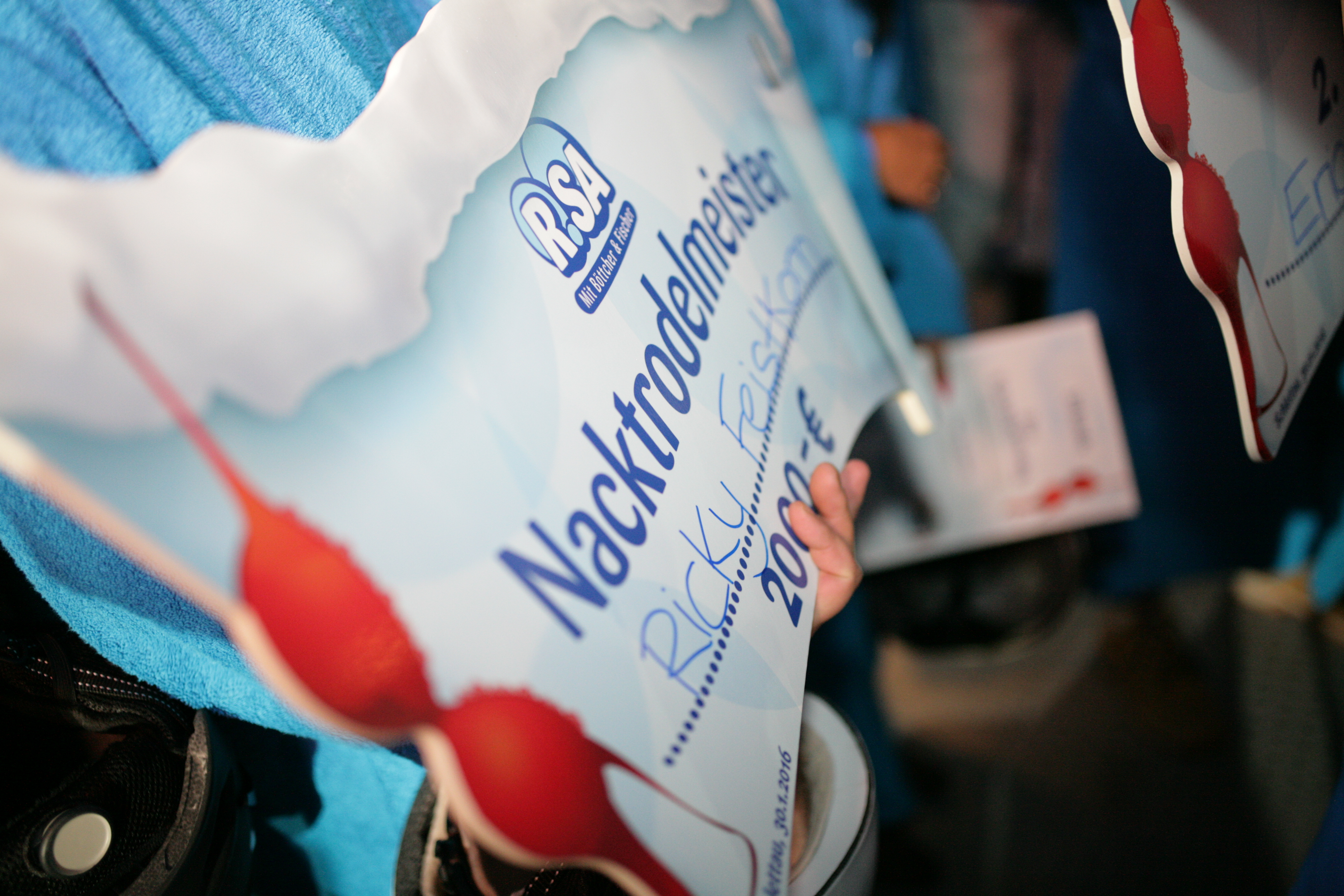 Die ehemalige R.SA-Nacktrodelmeisterin Sandra (25) aus Dresden war angetreten, um ihren Sieg vom 2014er Nacktrodeln zu wiederholen und landete gemeinsam mit Anschieber Ricky Feistkorn (31) aus Radebeul tatsächlich ganz oben auf dem Treppchen. Gemeinsam reckten sie nach spannenden Läufen den Pokal in die Höhe und freuten sich über 2.000 Euro Siegprämie. Auf Platz zwei landeten Eva Bajzova und Eric Hambeck (27), die sich über 1.000 Euro freuen durften. Platz 3 und 500 Euro teilten sich Janine Ludwig (30) und Moreno Hildebrandt (34). „Schlettau war ein toller Gastgeber. Besser geht’s nicht. So ein tolles Publikum, so starke Männer und die Frauen erst – so macht Nacktrodeln einfach Spaß“, so die Böttcher & Fischer.