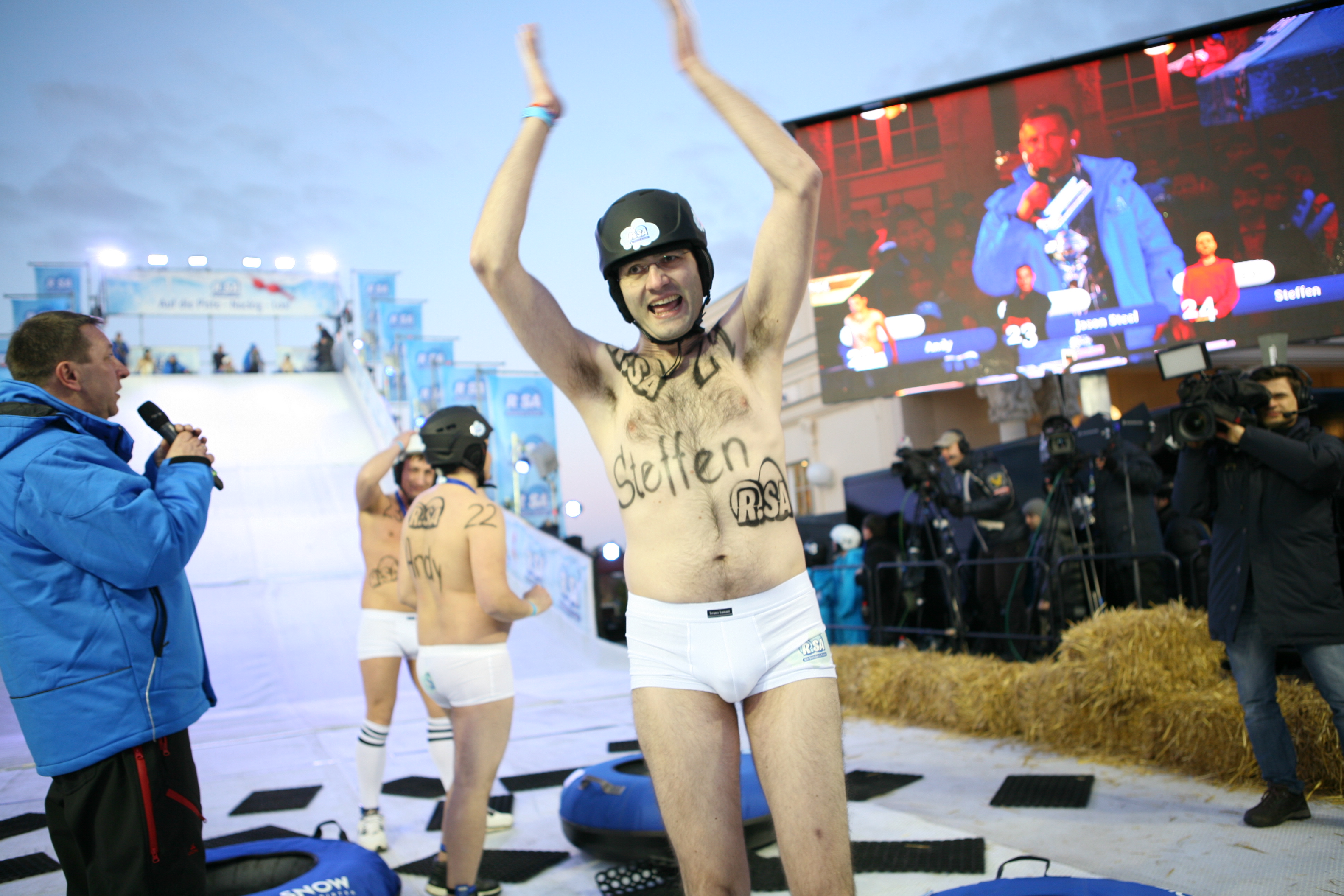 Micaela Schäfer rodelte auf Platz 8, nachdem sie letztes Jahr bereits in den Vorrunden ausgeschieden war, während Mia Julia mit ihrer kreativen Rodelposition von der Jury volle Punktzahl in der Haltungsnote holte. Neben den R.SA-Moderatoren Böttcher & Fischer stand Melanie Müller in der Jury und bewertete die knackige Nacktrodel-Haltung der 30 Pisten-Flitzer. Für Thomas Böttcher hingegen keine leichte Aufgabe: „Ich war komplett überfordert, auf welche Rundungen – also auf welchen Reifen – ich zuerst schauen sollte.“ „Wir haben jeden Rodler ganz genau angesehen, um die Haltungsnoten gerecht zu verteilen“, betonte Uwe Fischer. „Wie gut, dass sie überhaupt noch Schlüpfer anhatten, sonst hättest du gar nichts mitbekommen“, so Kollege Böttcher.
