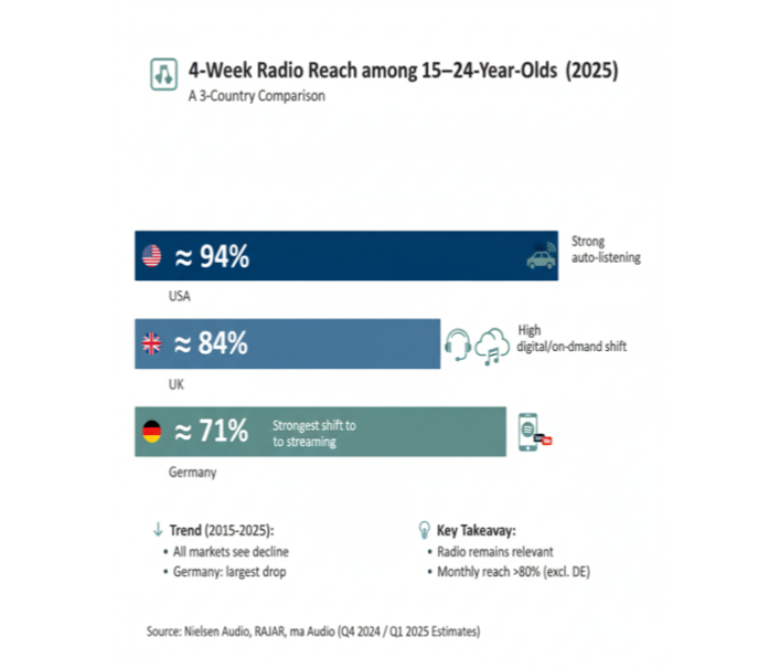In der Toronto Sun fand man vor einem Jahr einen Artikel über die Radioliebe der kanadischen Gen Z. Laut Nielsen liegt der Radio-Weekly-Cume der Gen Z in Kanada bei 78 Prozent. Wenn es ein Angebot für junge Menschen gibt, dann hören sie auch Radio.