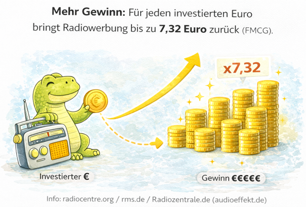 Für jeden investierten Euro bringt Radiowerbung mehr zurück! Im Bereich Mode mehr als € 3,00 – bei den FMCG sogar mehr als den Faktor 7!